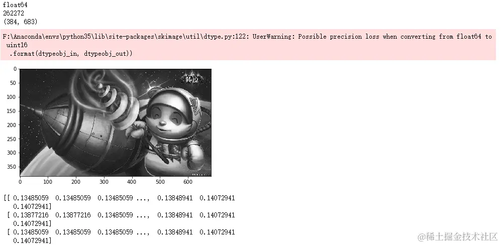 可以看到,灰度图像的矩阵的值被归一化了,注意注意!