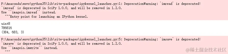 可以看到,有warining,提示我们imread和imsave在后来的版本将会被弃用,叫我们使用imageio.imread和imageio.imwrite。