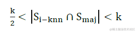 - 对每个样本 xi ,判断出最近邻样本集中属于多数类样本的个数,即:|Si:k−nn⋂Smaj|