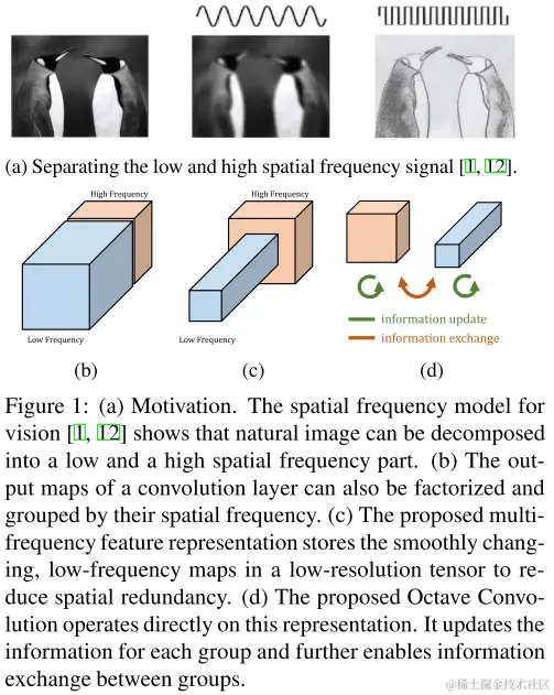 图:企鹅白肚皮(低频)冗余(上);传统CNN,OctConv对比(下)。
