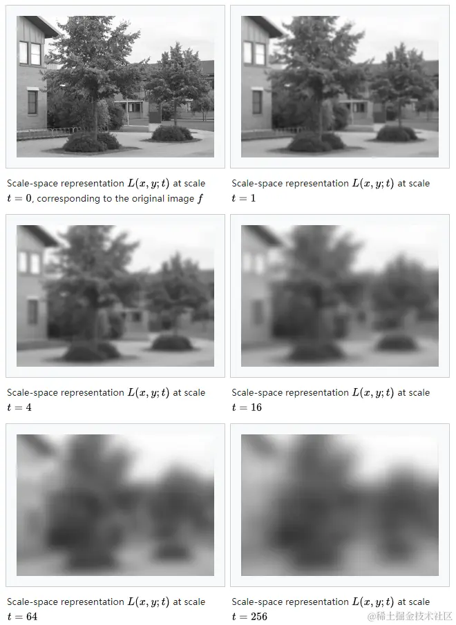 直观地看,图像中尺度小于t√t的结构会被平滑地无法分辨。因此,tt越大,平滑越剧烈。