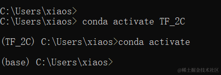 进入后我们就可以发现:(TF_2C)在之前路径前面,表示进入了这个环境。使用conda deactivate可以退出。