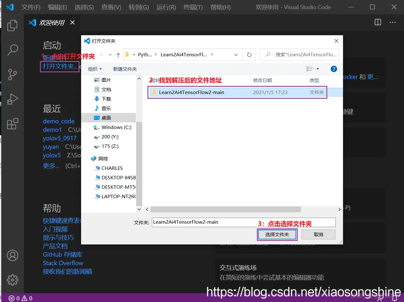 下载完成后,进行解压,解压后用VSCode打开此文件夹: