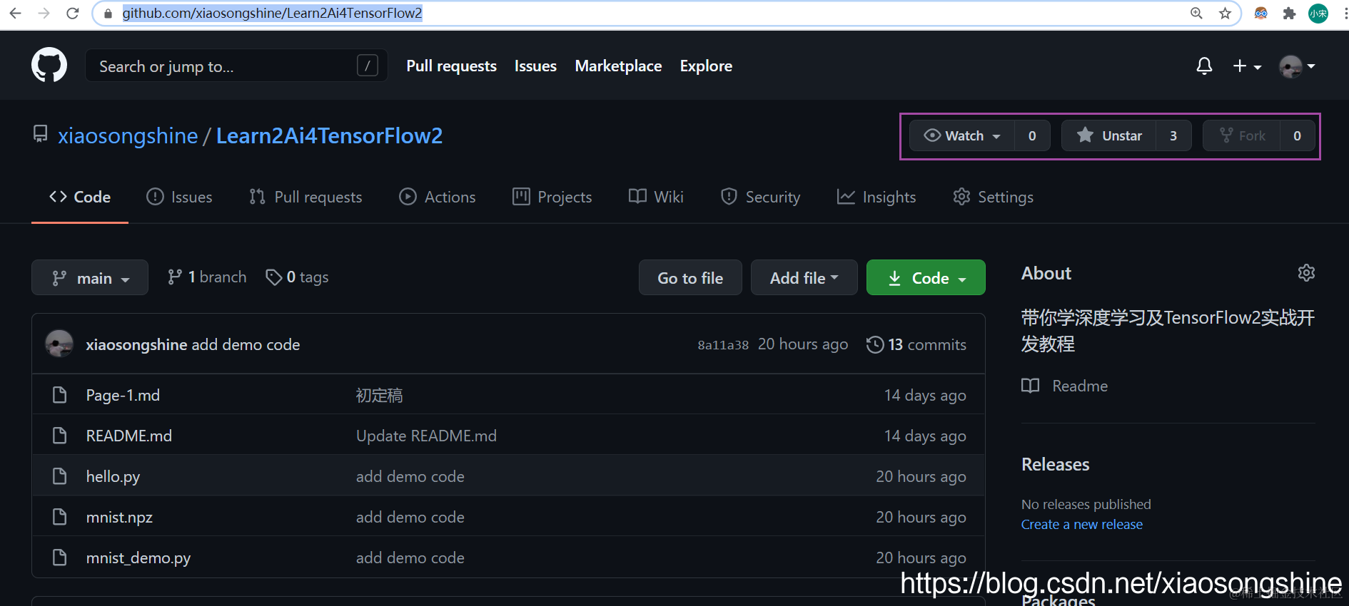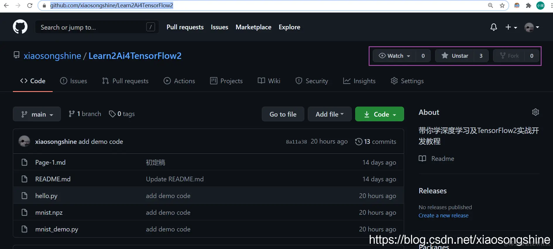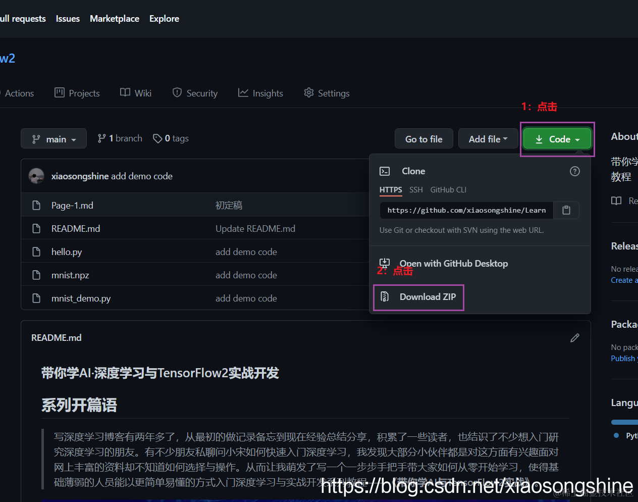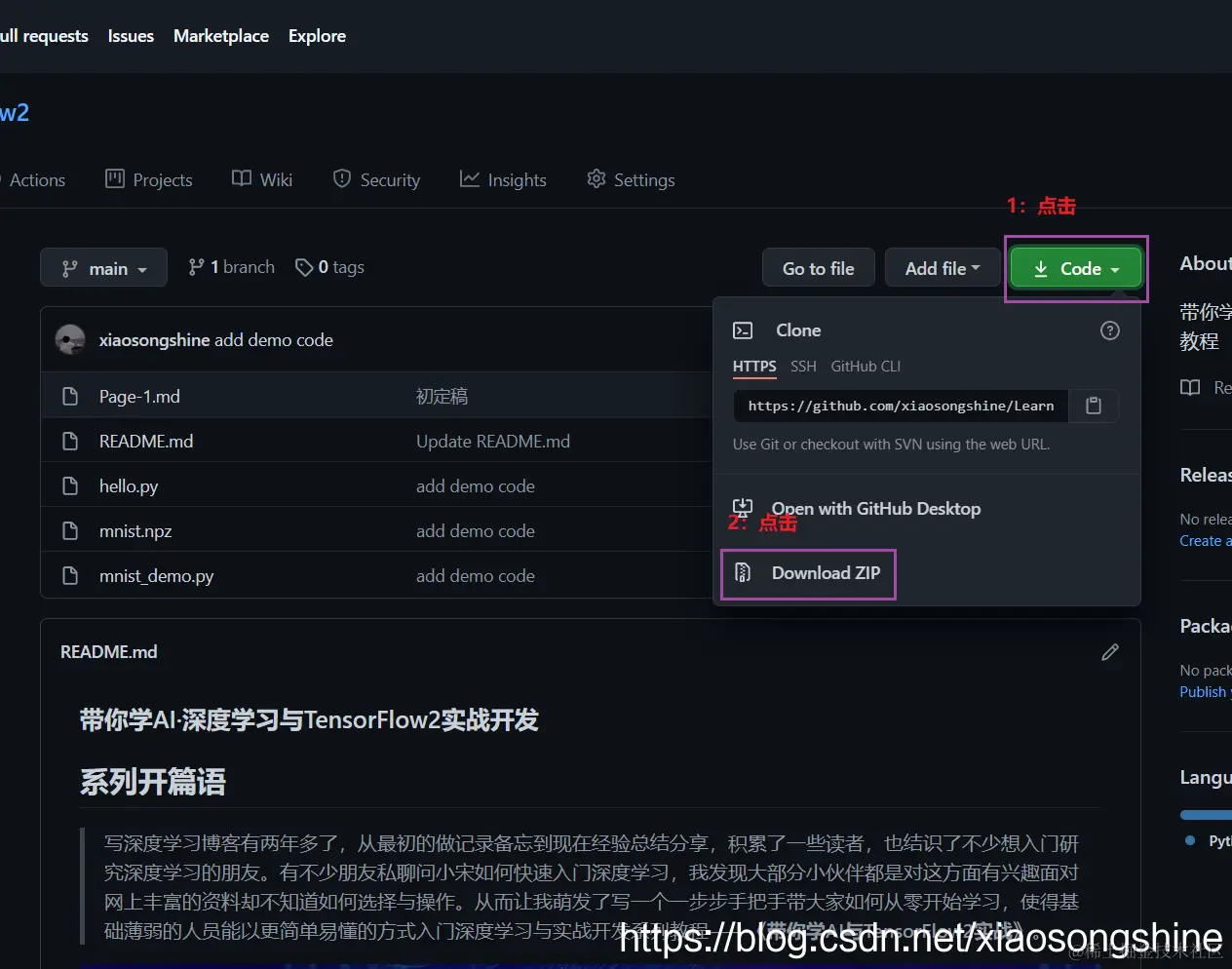 在浏览器打开开源链接:https://github.com/xiaosongshine/Learn2Ai4TensorFlow2