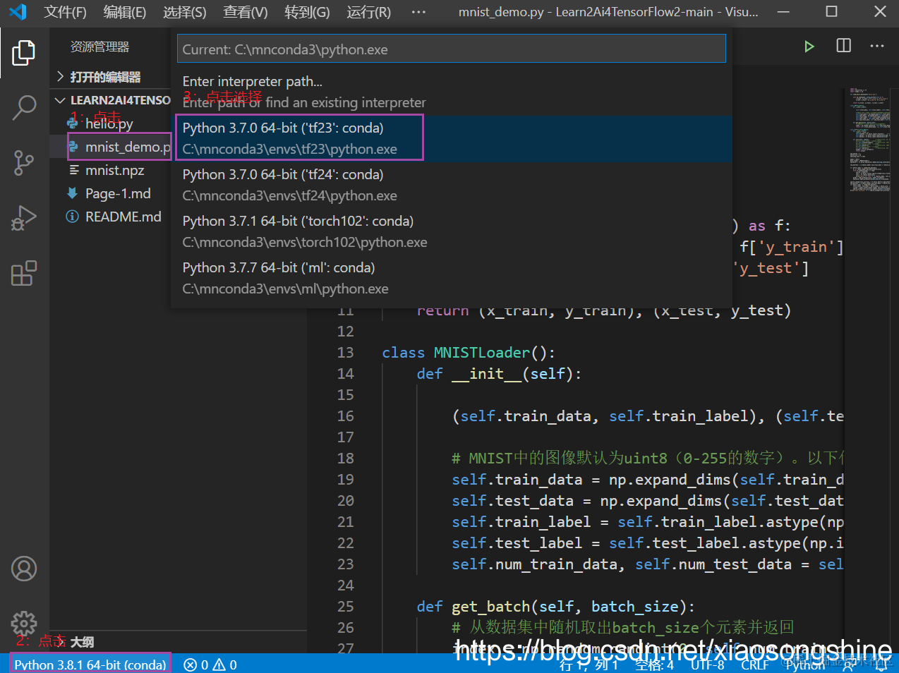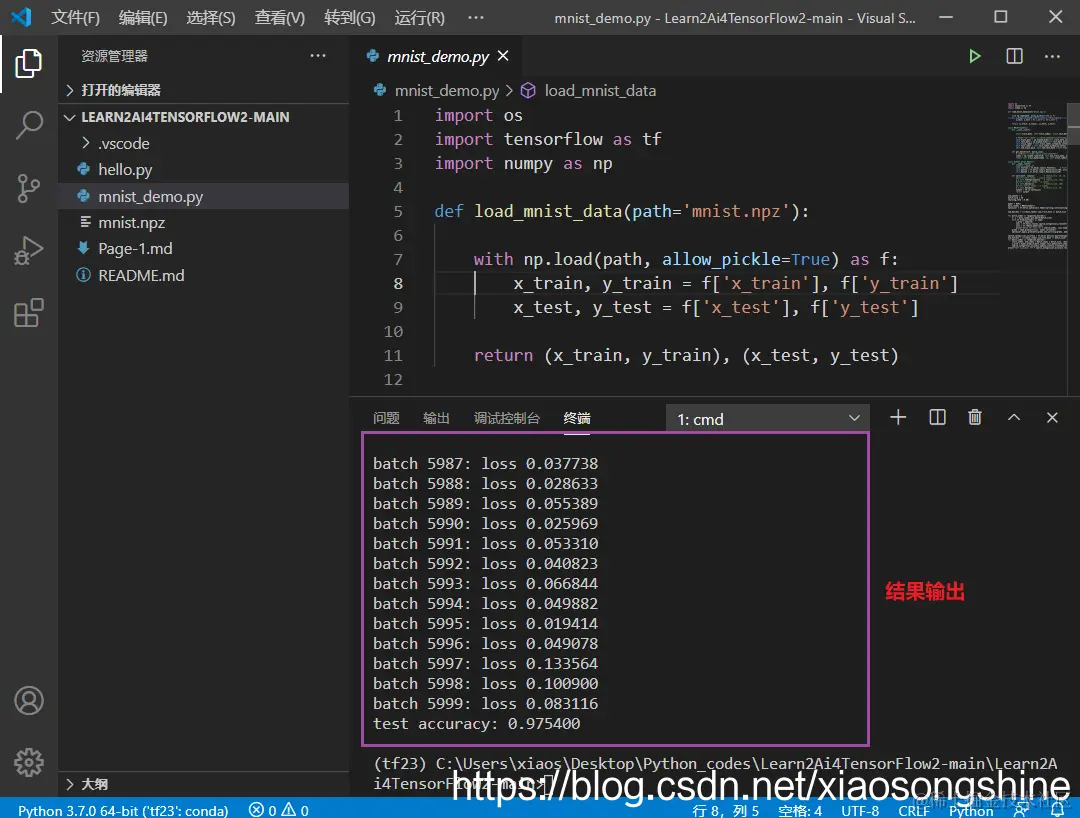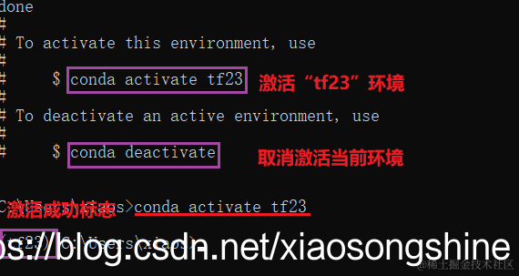 完成后输入:conda activate tf23 进入此环境,进入后可以看到前面了多了“tf23”,表示激活了此Python环境。