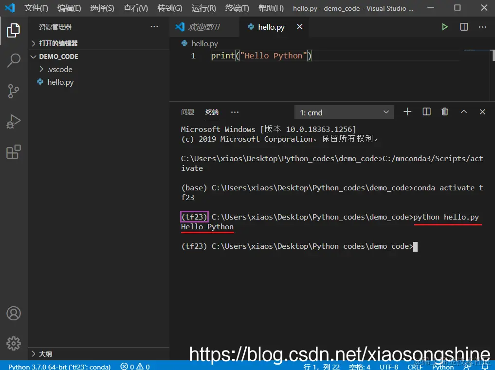 随后我们可以新建一个新建一个 Python 环境,命名(-n)为“tf23”,指定Python版本为3.7(python==3.7):