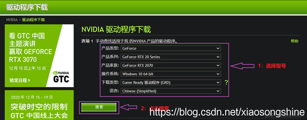 首先是Windows 10 英伟达驱动安装,驱动下载地址: