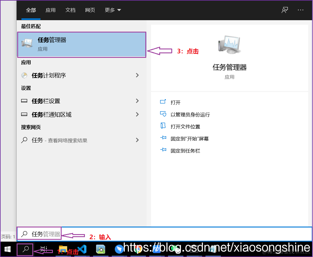 也可以通过“任务管理器”界面查看,具体方法如下图所示:点击下方“搜索”按钮,搜索“任务管理器”进入即可。