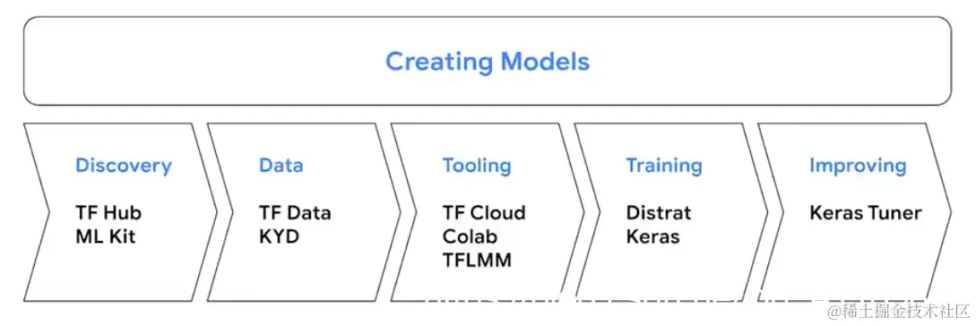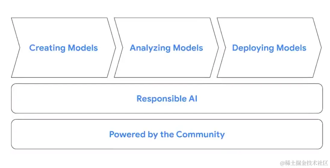 TensorFlow 其实是一个生态系统,它的目标是使 ML 在每个阶段中,都变得更加容易。从创建模型、分析模型,部署、运行,它是跨越整个生命周期的工具,保持可靠的 AI 前沿技术。
