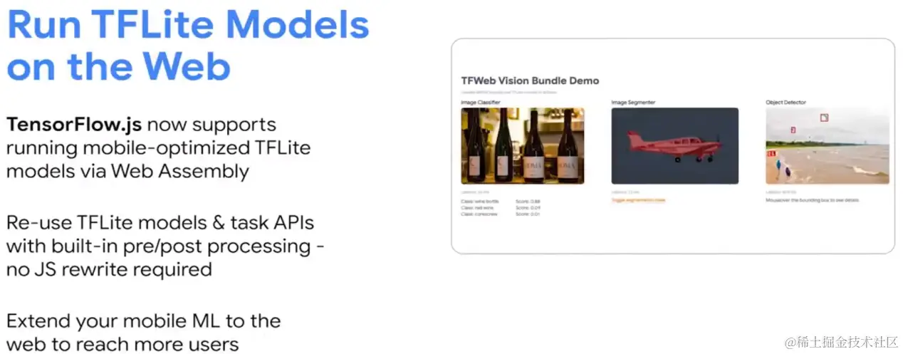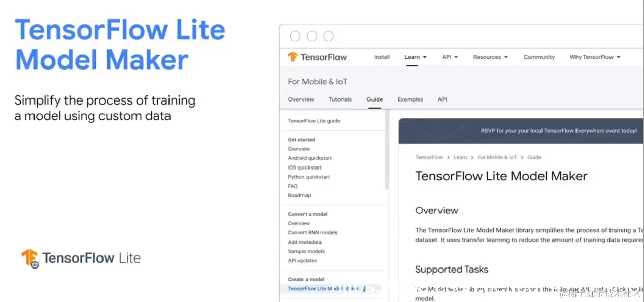 在移动端部署模型,可以使用 TensorFlow Lite;在 Web 端部署模型,可以使用 TensorFlow.js。