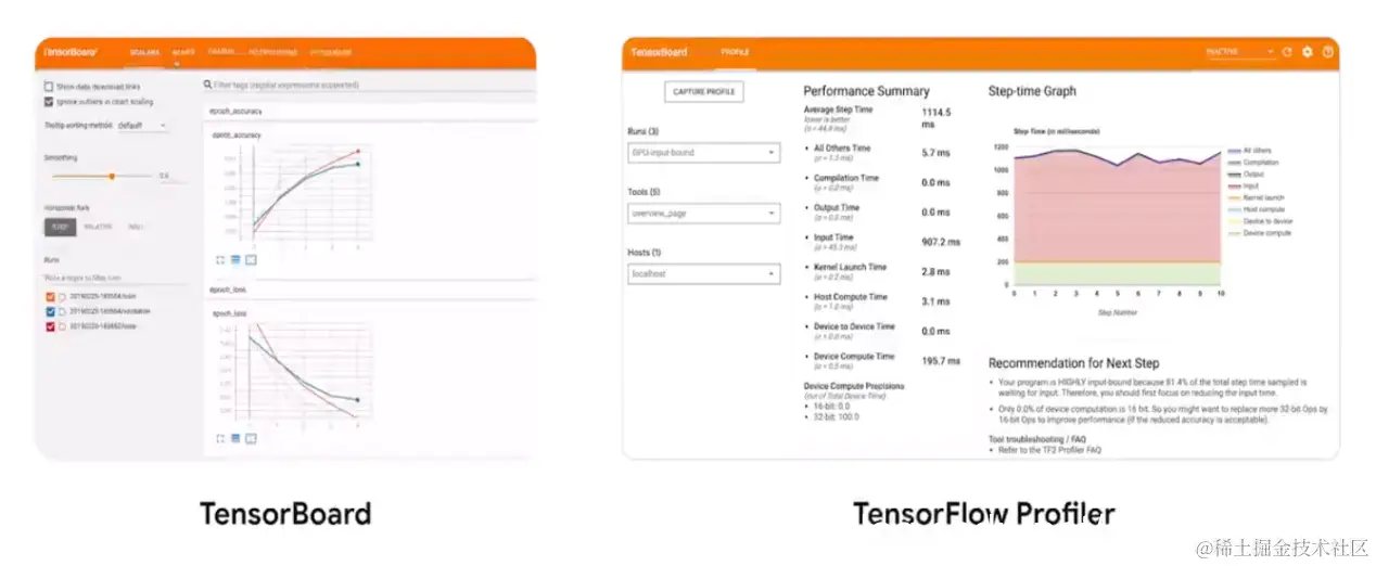 分析模型的工具主要有两个,分别是 TensorBoard 和 TensorFlow Profiler。TensorBoard 是理解实验的可视化工具包,可跟踪度量、可视化模型,探索模型参数、嵌入等等。TensorFlow Profiler 主要是分析 TensorFlow 代码的执行情况。