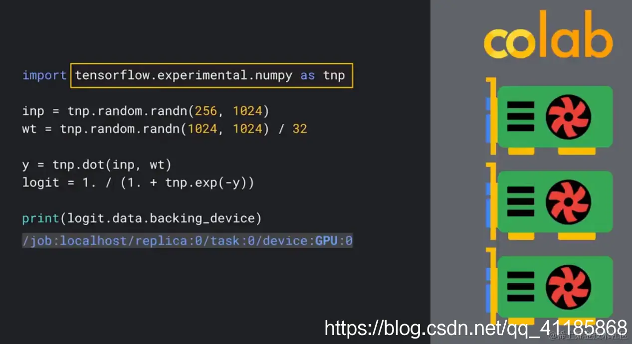 Keras 可以帮助我们使用相同的编码技巧实现这些高级用例,但这并非唯一,也可以使用Numpy 构建,在 TensorFlow 2.5 版本中,TF.NumPy 结合了 Numpy API 的简单特性,同时可以使用 GPU 和 TPU 仅需加速,这些都可以在 Colab 这样工具的 web 中免费使用。