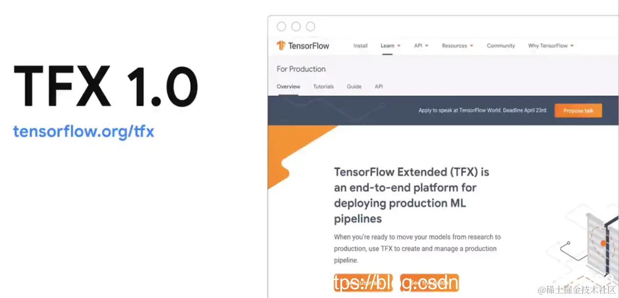 TFX 1.0,是企业级正式版 ML。它适合在企业规模上生产 ML。Google 创建 TFX 的原因在于我们需要针对 ML 产品和服务构建强大的框架,然后将其开源,以供其他人使用。其中包括对训练模型的支持,相关模型可用于移动应用和 Web 应用,以及基于服务器的应用。与许多合作伙伴成功推出 Beta 版后,Google宣布推出 TFX 1.0,已为企业级正式版 ML 做好准备。