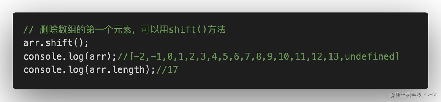 - 方式二:shift()方法,删除数组里的第一位元素