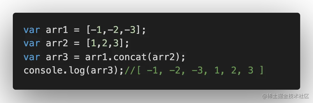 - concat()方法,连接2个或更多数组,并返回连接过后的一个新数组,concat()方法可以向一个数组传递数组、对象或是元素。