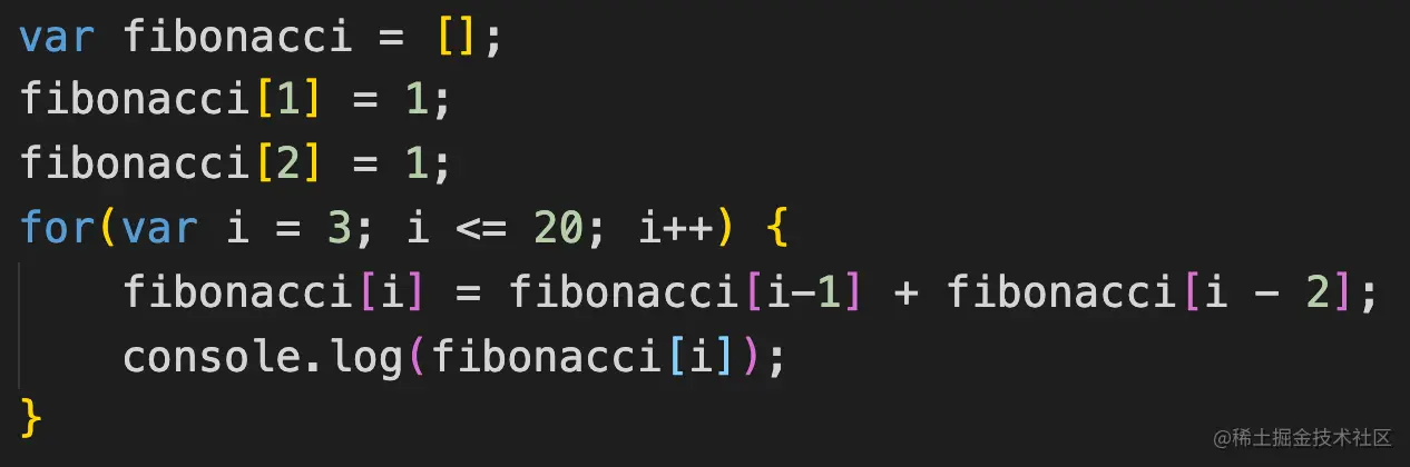 - 求斐波拉契数列的前20个数字,已知斐波那契数列中第一个数字是1,第二个数字也是1,从第三个数字开始,每一个数字都是前两个数字之和。(fibonacci[i] = fibonacci[i-1] + fibonacci[i-2] , i >=3)