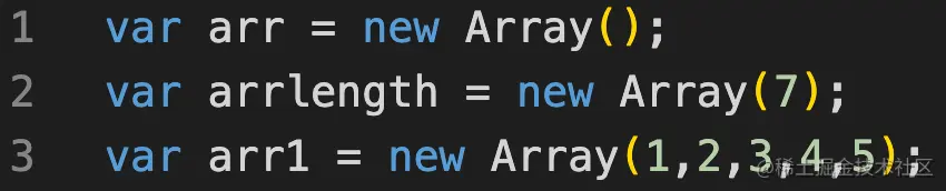 - 使用new关键字,就能简单地声明并初始化一个数组(行{1}),用这个方式还可以创建一个指定长度的数组(行{2})。另外,也可以直接将数组元素作为参数传递给它的构造器(行{3})。