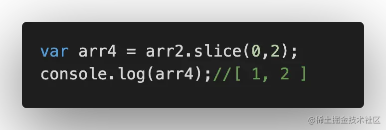 - slice()方法,传入索引值,将数组里对应索引范围的元素作为新数组返回。