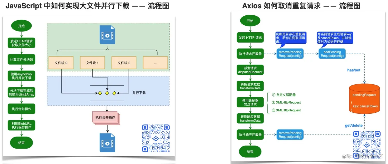 2、写文章,多画图。特别是源码分析的文章,这样可以帮助读者更好地理解核心的流程。比如之前写 JavaScript 中如何实现大文件并行下载 和 Axios 如何取消重复请求 文章时,我就画了对应技术方案的流程图。