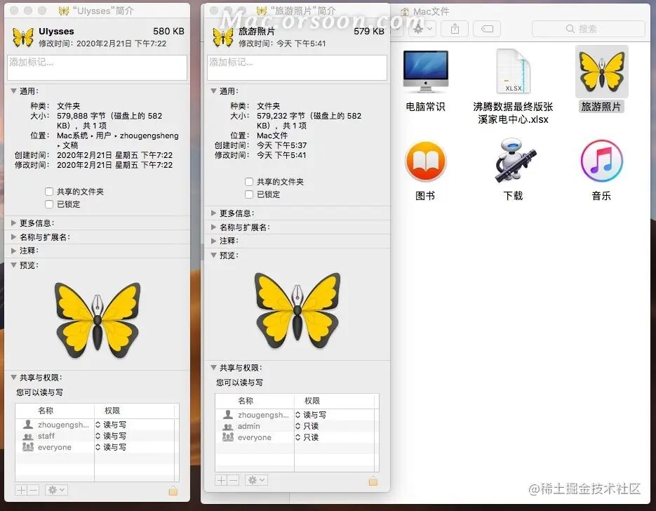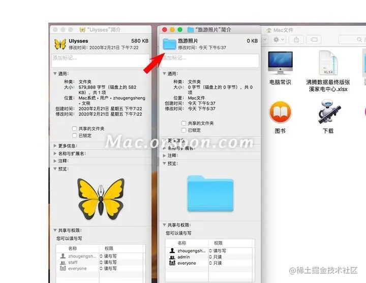 (2) 再点击需要替换的文件夹(如旅游照片),也是快捷键Command+I 打开“简介“,出现下图;