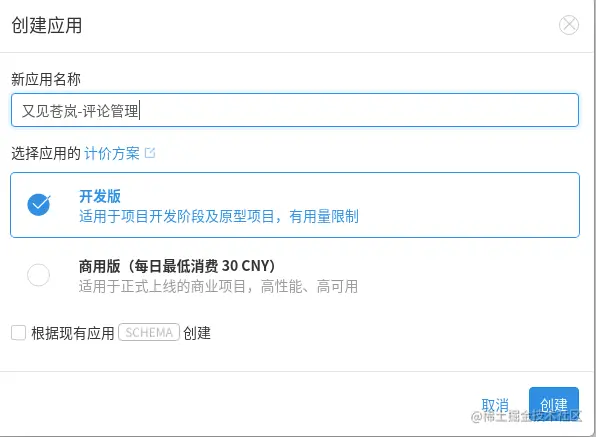 - 登录leancloud,进入控制台点击创建应用。