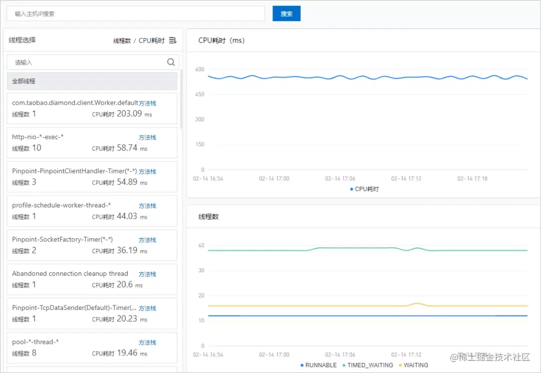 那么有没有快速分析应用性能瓶颈的方法呢?答案必须是有,而且不止一种。最常见的就是手动触发一次持续一段时间(比如 5min) ThreadDump,然后分析这段时间内的线程开销与方法栈快照。手动触发 ThreadDump 的缺陷就是性能开销比较大,无法常态化运行,不能自动保留已发生的现场快照。比如压测期间 CPU 高,等到压测结束复盘时,现场已经不在了,手动 ThreadDump 已经来不及了。