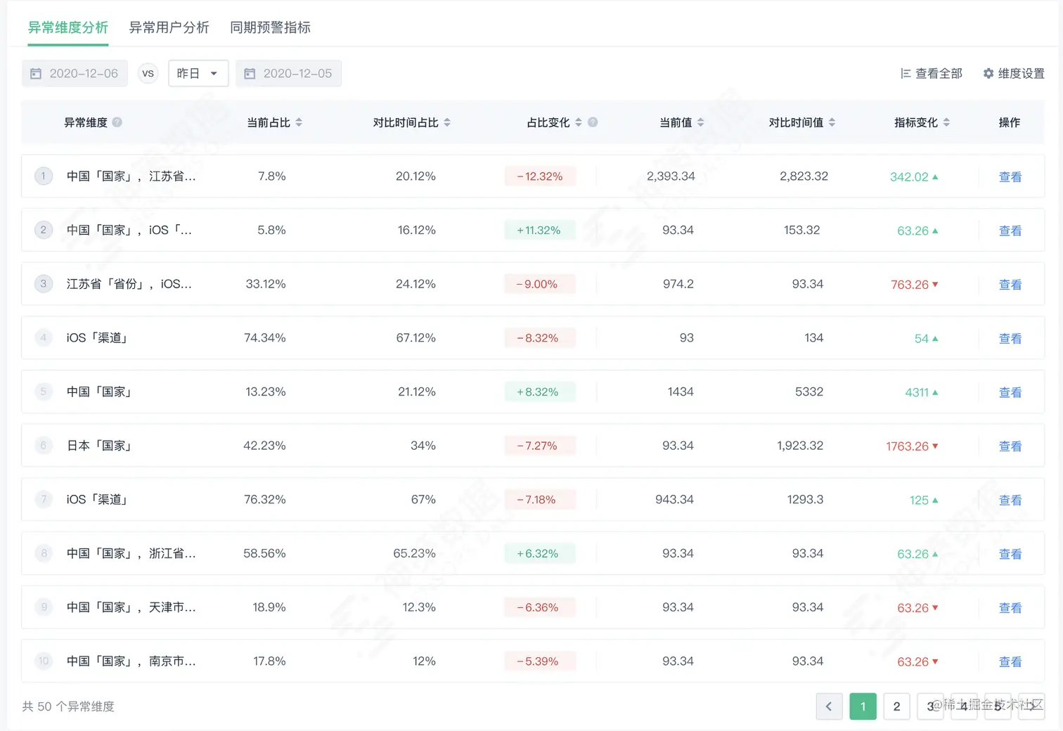 神策智能预警分析可基于算法,自动获取对整体指标变化影响较大的指标,将其初步判定为异常维度。比如自动获取该事件在数千种事件分析中的分组信息,自动获取该事件的所有事件属性。除此之外,还支持用户自定义维度分层。