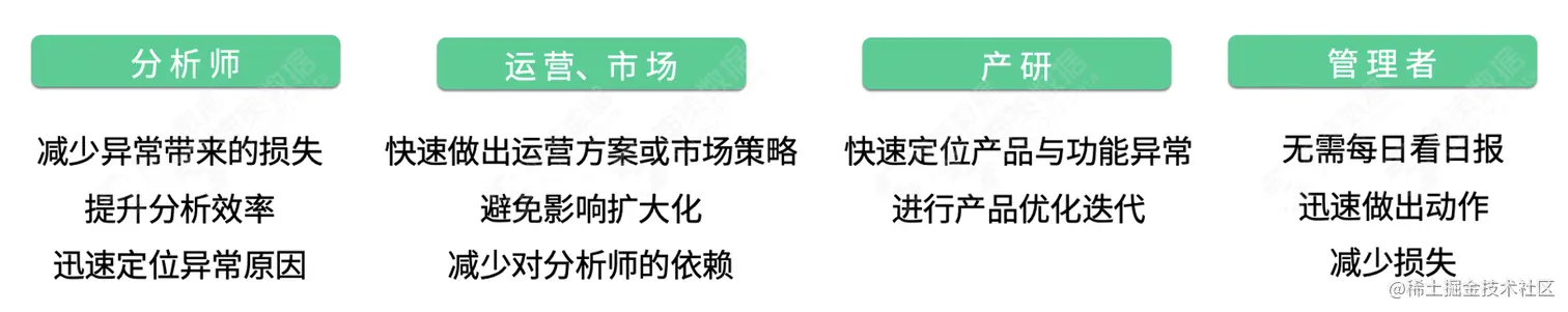 分析师/运营/产品同学需要每日关注实时/离线数据,人工操作费时费力,效果不佳;