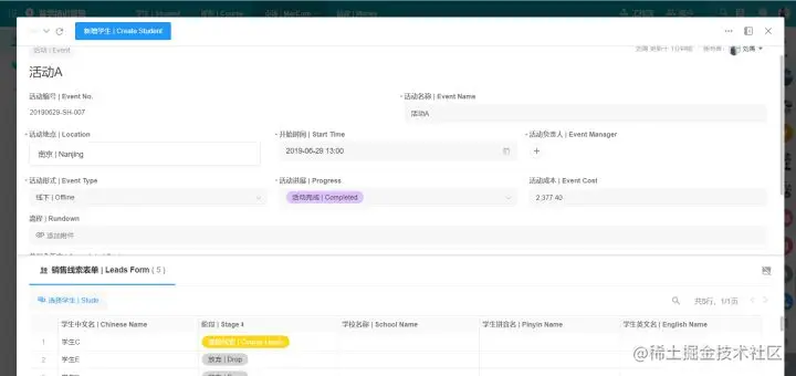 市场管理:主要针对市场部举办活动的安排,包括新增活动、进程推进、转化线索入池、成本把控等,在系统中管理维护数据量和数据维度不大。
