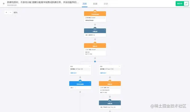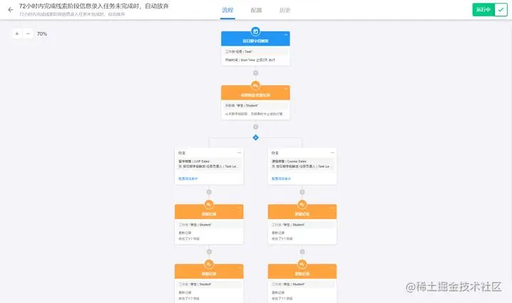 任务:任务也是贯穿整个管理周期的元素,涉及客户的跟进提醒、签约后的收款提醒、服务开始后的各个服务环节提醒等等内容,而这些都是需要通过工作流添加各类触发条件以及分支判断等节点来实现的。