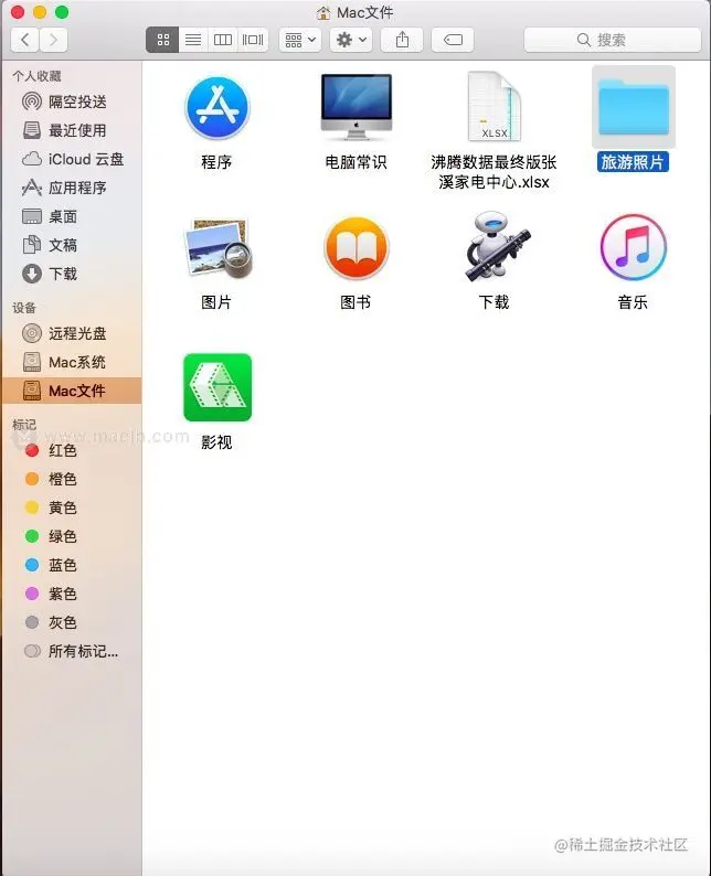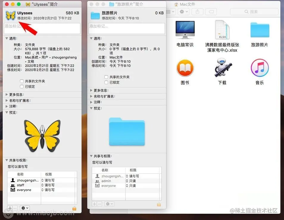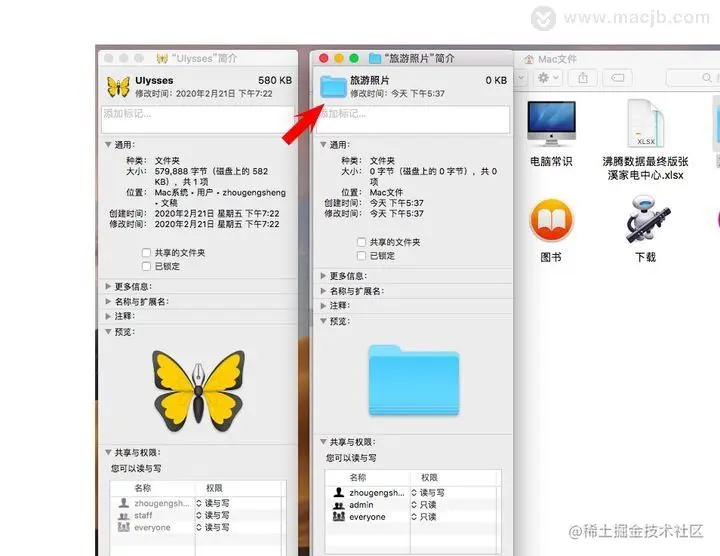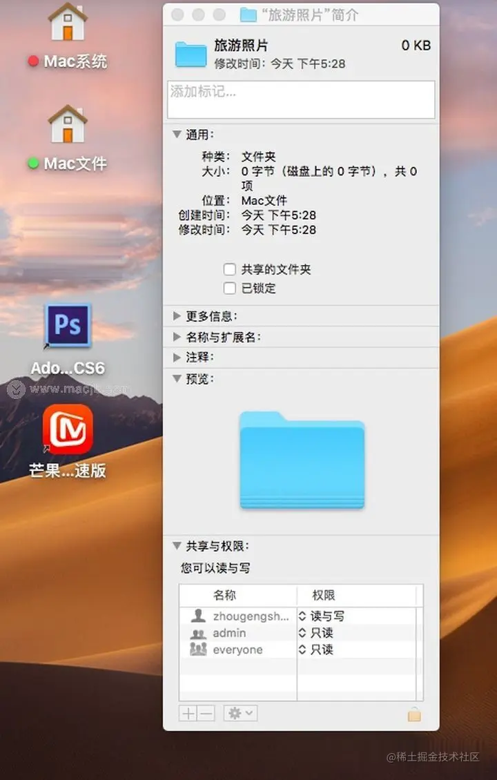 (2) 再点击需要替换的文件夹(如旅游照片),也是快捷键Command+I 打开“简介“,出现下图;