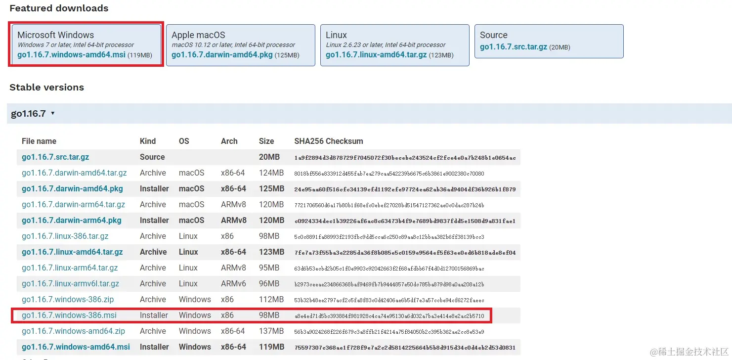 如果电脑系统是32位或者不是Windows系统的话,就需要下载对应32位和其他系统的Go语言开发包。