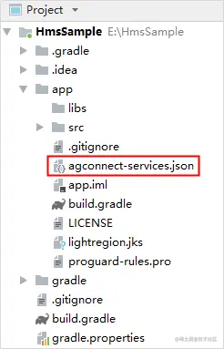 步骤 4:将“agconnect-services.json”文件拷贝到应用级根目录下。