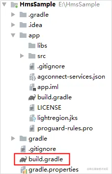 步骤 1:打开Android Studio项目级“build.gradle”文件。