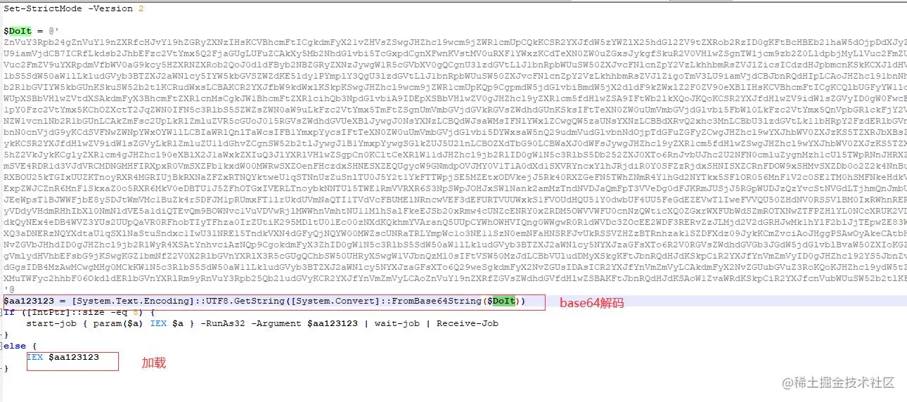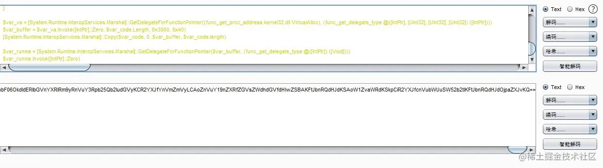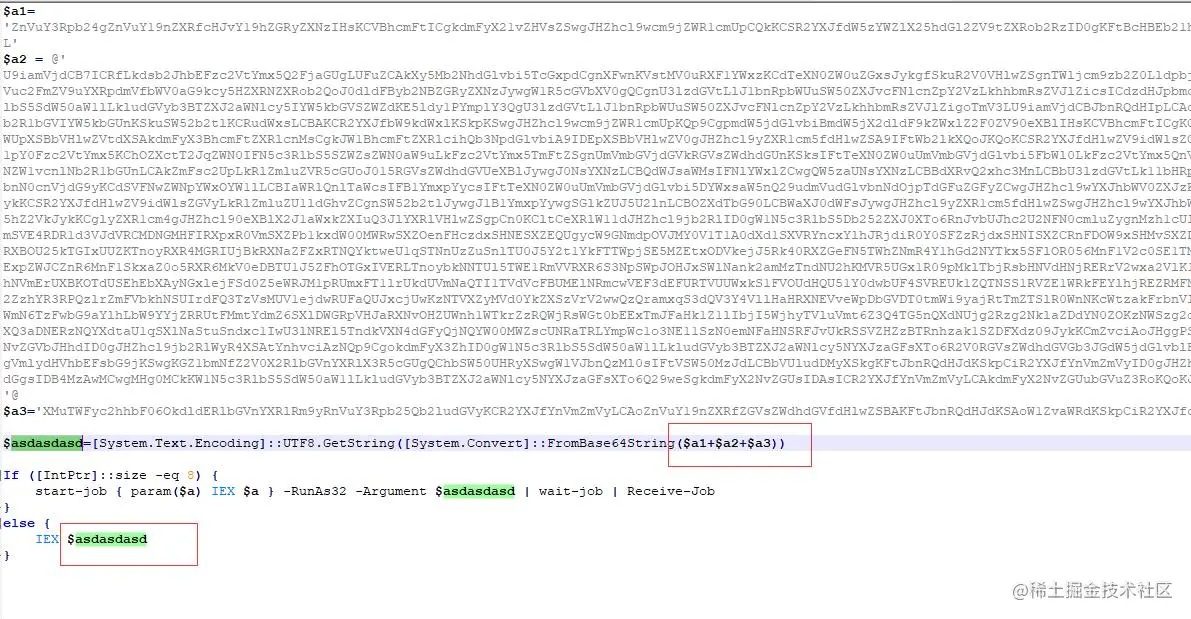 解密后变量=\[System.Text.Encoding\]::UTF8.GetString(\[System.Convert\]::Fromb ase64String(加密后变量))