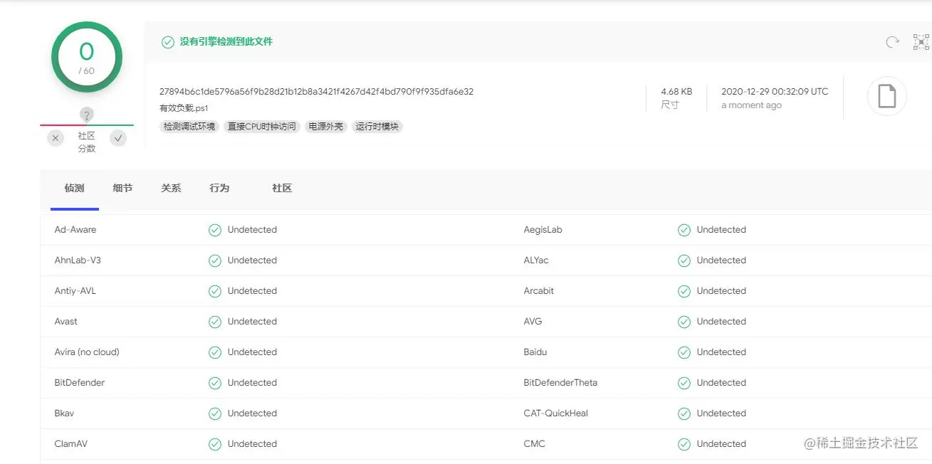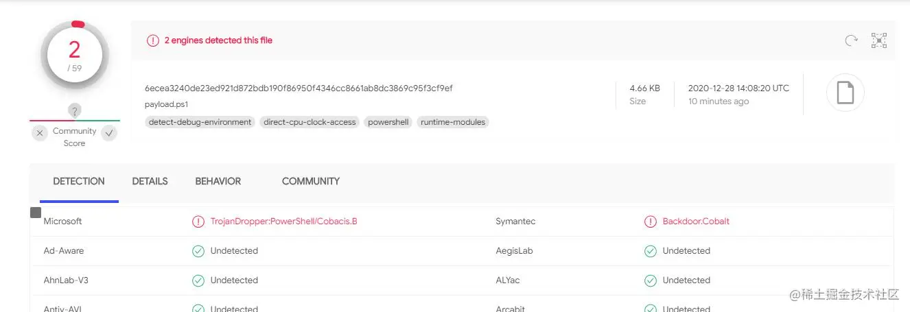 常见的powershell攻击工具有powersploit、nishang、empire、powercat,试了试这些免杀脚本,发现都不太理想,大部分都被检测到了