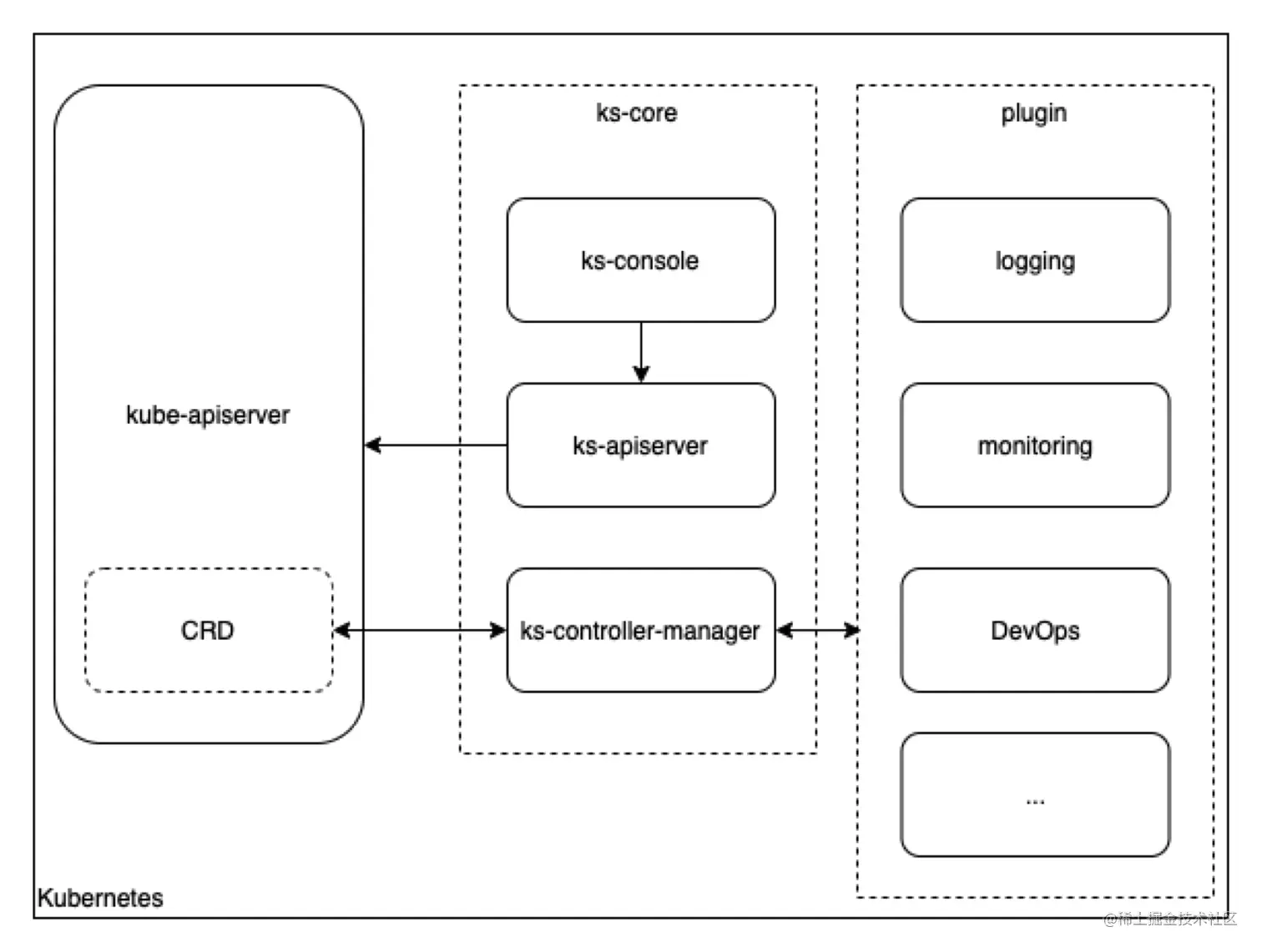 KubeSphere 的核心架构如下图所示: