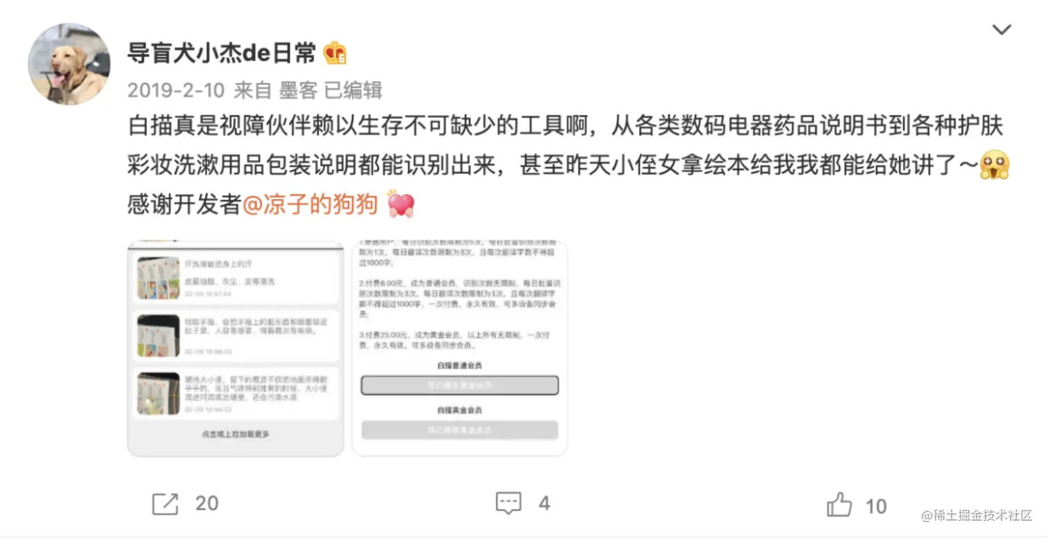 你或许很难想象,作为一名个人开发者的陶新乐,他最早开发白描App是为了女朋友。陶新乐的女友热爱阅读,经常做读书笔记。为了减轻抄录压力,她尝试使用了当时市面上的各类文字识别软件,但她发现:有的软件操作流程繁琐,有的费用高昂,有的则识别不准确……看到女朋友痛苦不已,陶新乐当下决定亲自做个体验好、效果佳的OCR文字识别工具给女朋友使用,并且很快付诸了行动。这或许就是开发者独有的浪漫。