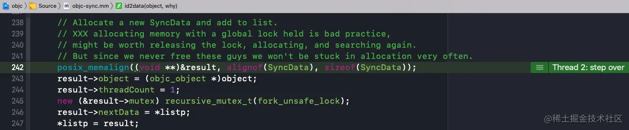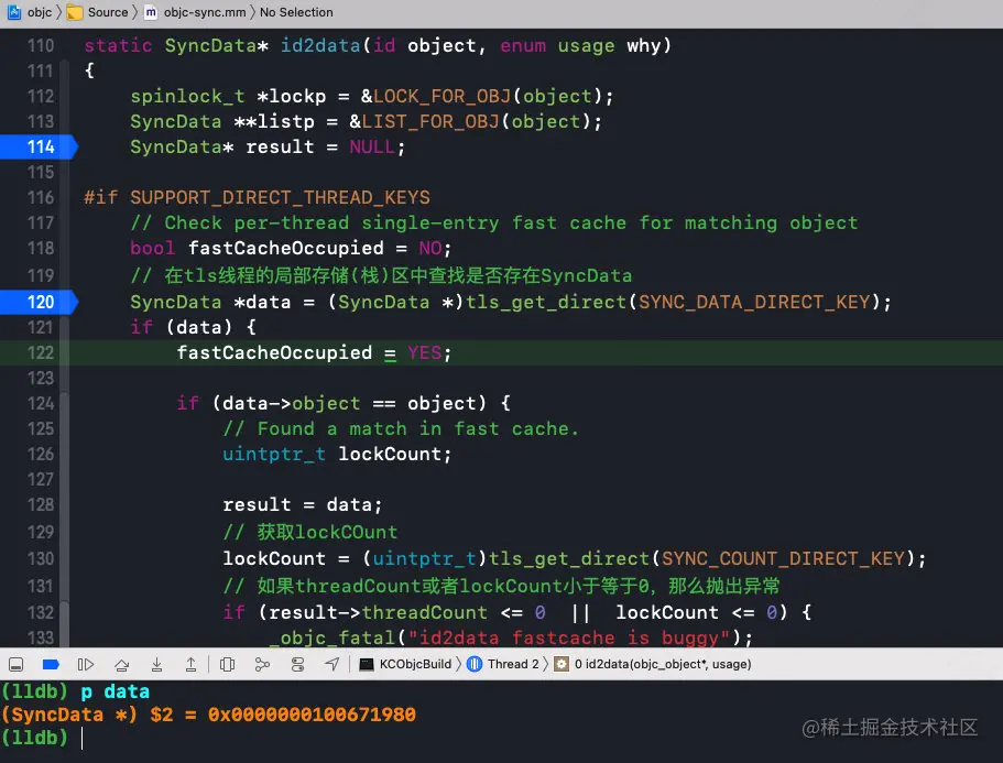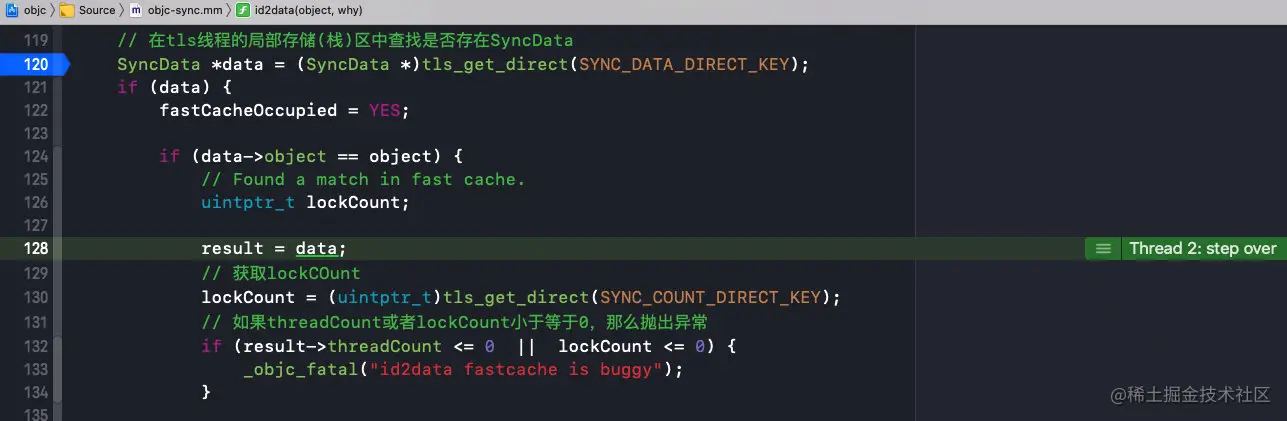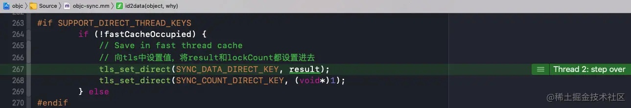 SyncData *data = (SyncData *)tls_get_direct(SYNC_DATA_DIRECT_KEY);在tls线程的局部存储(栈)区中查找是否存在SyncData;- 如果存在