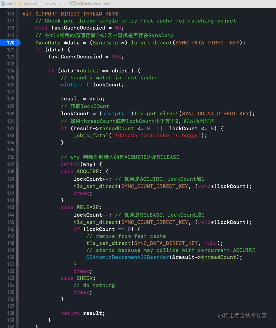 TLS中找到SyncData之后进行lockCount++; - 如果