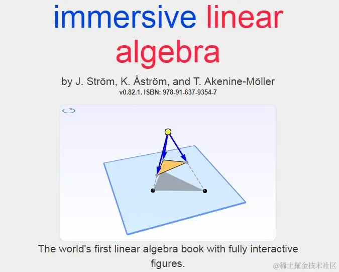 《沉浸式线性代数》(Immersive Linear Algebra) :通过可以活动的图像,你可以观察和理解难懂的数学理论:immersivemath.com/ila/index.h…