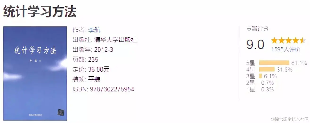 推荐理由: 不要被书名《统计学习方法》(作者:李航)骗到,讲的其实是机器学习算法。