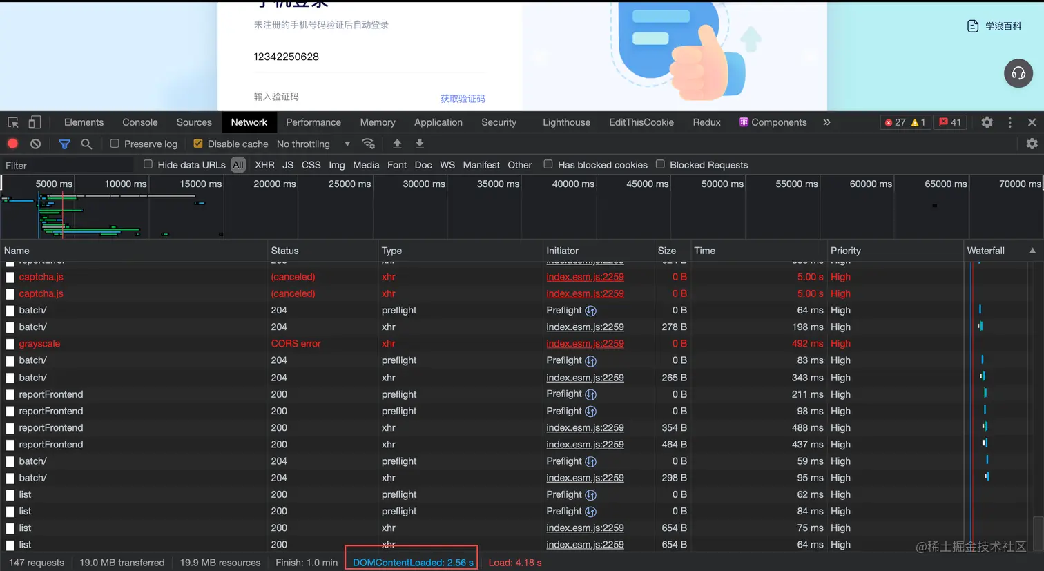是否还有优化空间,将页面加载时间降得更低?我们可以通过 Performance的NetWork火焰图看看到底是哪些文件的加载耗时长,延长了DomContentLoad触发时机。首先DomContentLoad事件触发影响因素有html下载、dom解析、js脚本下载&执行,都会影响DomContentLoad触发。
