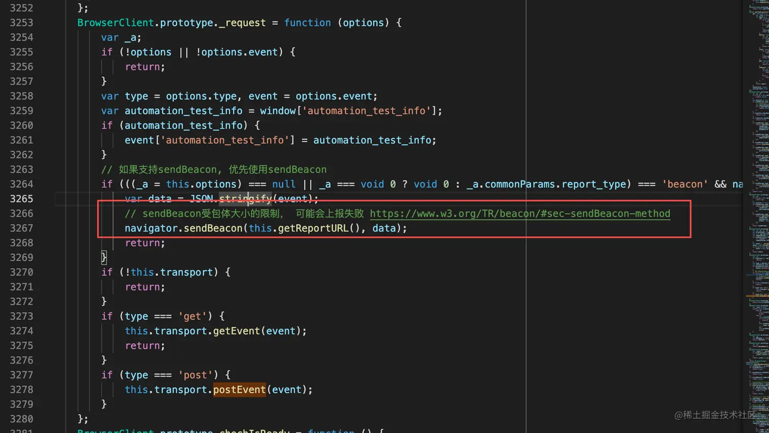 下面是Slardar源码截图,可以看到他们上报监控数据优先采用的sendBecan,降级策略为XHR请求。