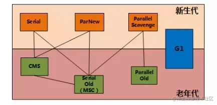 JDK7/8后,HotSpot虚拟机所有收集器及组合(连线)如下: