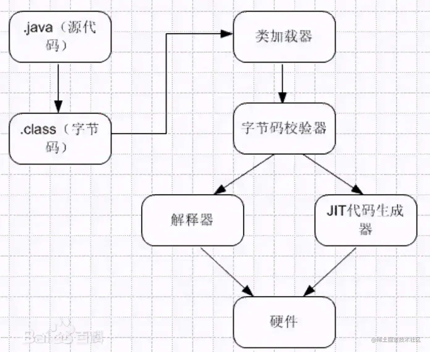 java编译器只要面向JVM,生成JVM能理解的代码或字节码文件。Java源文件经编译成字节码程序,通过JVM将每一条指令翻译成不同平台机器码,通过特定平台运行。