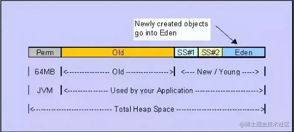 (4) 所有新创建的Object 都将会存储在新生代Yong Generation中。如果Young Generation的数据在一次或多次GC后存活下来,那么将被转移到OldGeneration。新的Object总是创建在Eden Space。