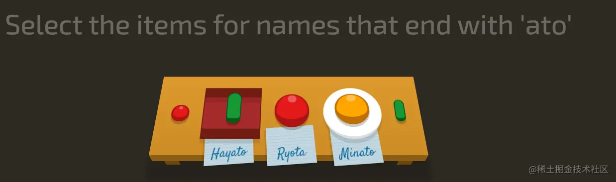 以下数字标题就是关卡数,如1就代表第一关;注意网站上的右侧是有一些相关提示的,也许你发现写的方法与我不同也能通过,但是也要练习一开始没想到的方法,这正是该学习网站的目的。——欢迎留下你的解法~