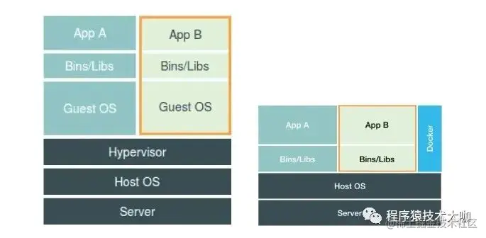 经过前面的进程、文件系统、资源限制分析,详细各位已经对 Docker 的隔离原理有了基本的认识,那么它和传统的虚拟机技术有和区别呢?这里贴一个网上的Docker和虚拟机区别的图。