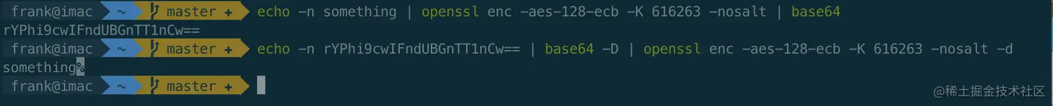echo -n "需要加密的字符串" | base64 -D | openssl enc -aes-128-ecb -K "密钥" -nosalt -d